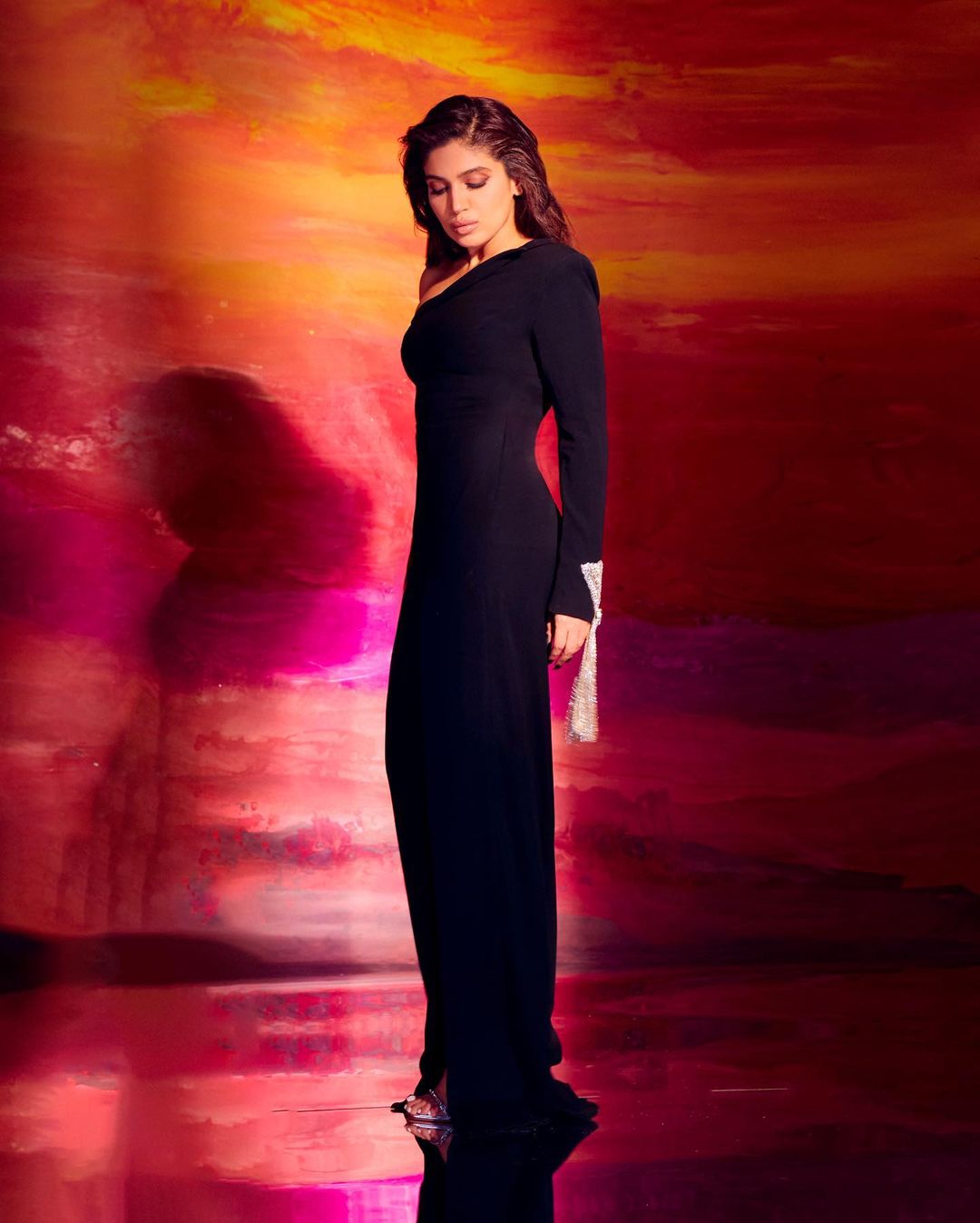 In the world of fashion, Bhumi Pednekar stands out as a trendsetter with her impeccable style choices. Her recent appearance in a striking one-shoulder black slit gown has captured the attention of fashion enthusiasts worldwide. The ensemble, originating from the renowned Stada Couture brand, showcases her distinct fashion preferences while reflecting the brand's signature style. The gown features an elegantly embellished single long sleeve and a thigh-high slit, adding a touch of sophistication and edginess to her look. This choice perfectly complements her captivating aura and elevates her fashion standards.